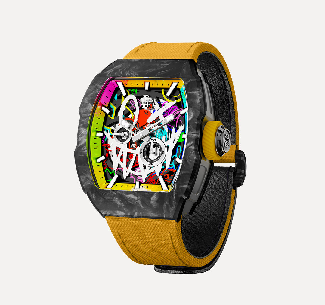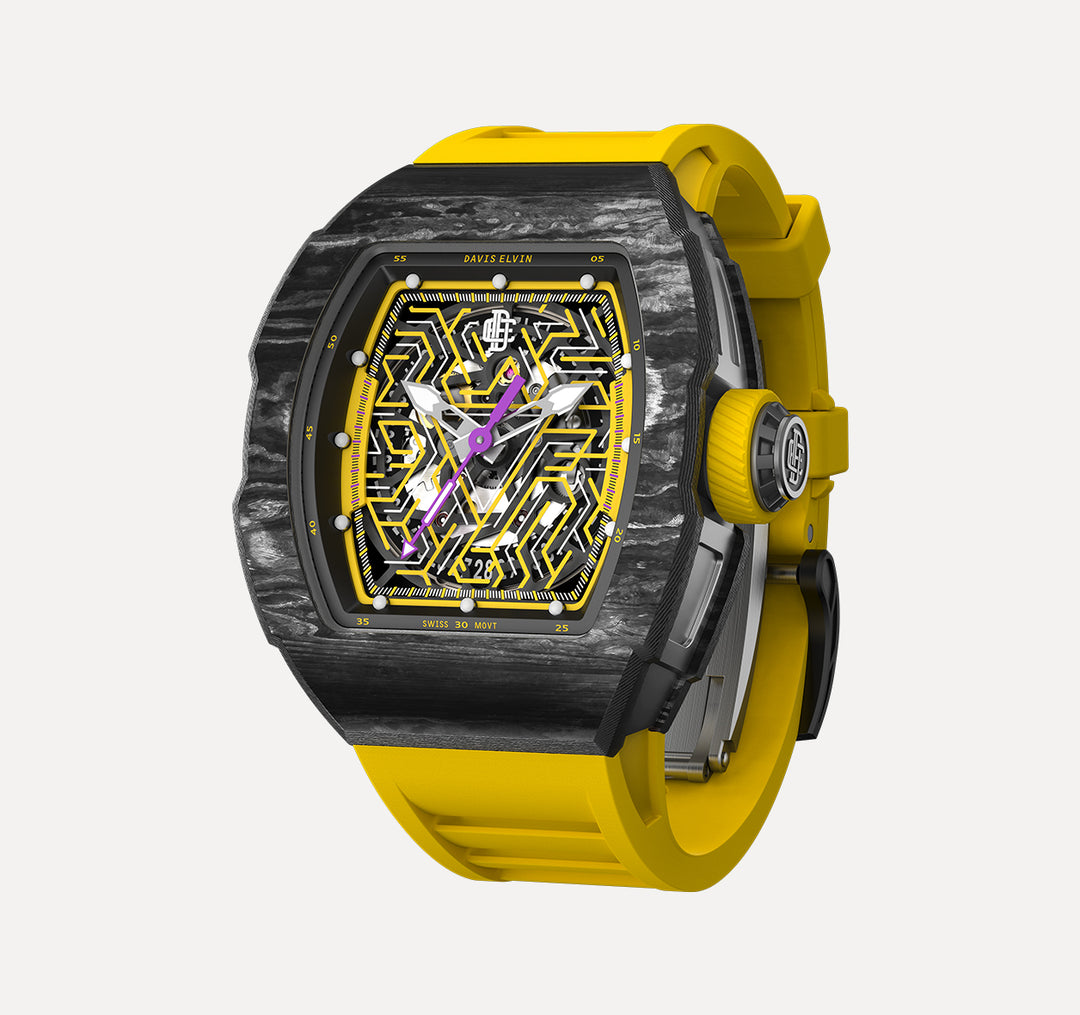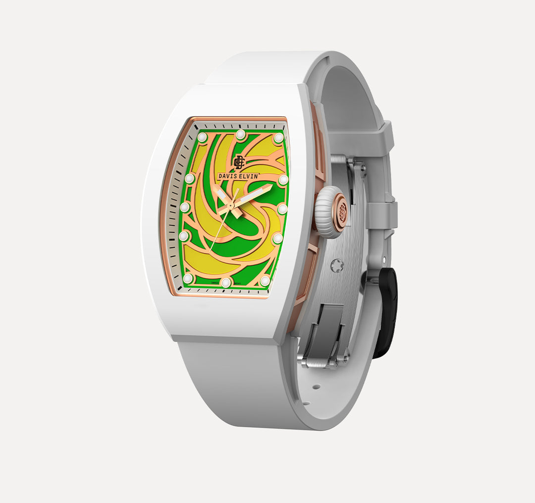 In 2019, DAVIS ELVIN launched the ROMA and SICILY watch series, subtly fusing its own artistry with watchmaking, breaking the fetters of traditional watchmaking. DAVIS ELVIN watches not only adopt bright and dazzling colors to express personality and attitude, but new composite materials such as carbon fiber, ceramic and fluoro rubber and other materials from aerospace and automotive fields, are also used in the manufacture of watches, allowing technology and art to achieve common pursuit of beauty.