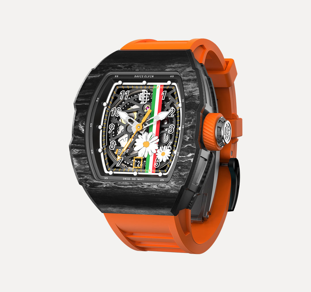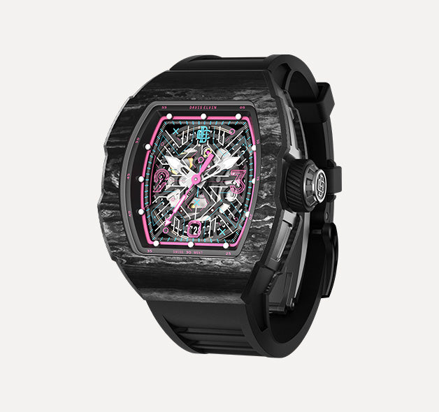 The DAVIS ELVIN ROMA (men's sports watch) and SICILIA (women's watch) are known for their avant-garde barrel design, rich colors, carbon fiber case, rubber strap and automatic mechanical movement. With its unique shape and design, DAVIS ELVIN were well received by fashion users and quickly made a name for itself in the watch industry.